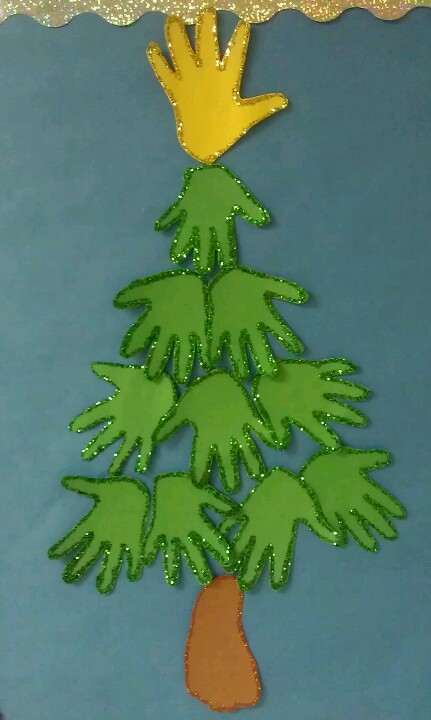 - Keď nám farba zaschla, nanesieme lepidlo na zahnuté časti stromčeka a prilepíme ho na pripravený podklad. Prilepíme ho tak, aby bola stredová čiara stromčeka presne tam, kde je stredová čiara podkladu. Samozrejme nezabudneme vynechať priestor na hviezdu 🙂