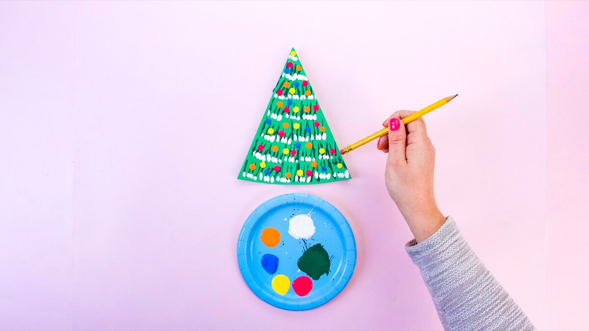 - stromček roztvoríme a vyzdobíme pomocou temperových farieb alebo rôznych nálepiek, či pom pom guličiek.