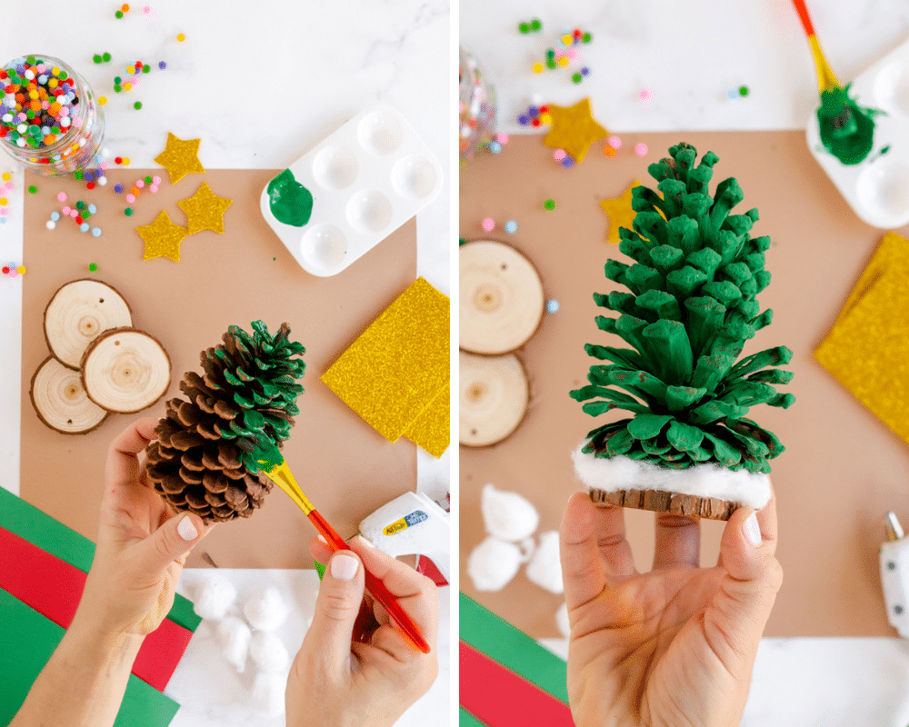 - Šišky nafarbíme zelenou farbou a necháme ich vyschnúť.