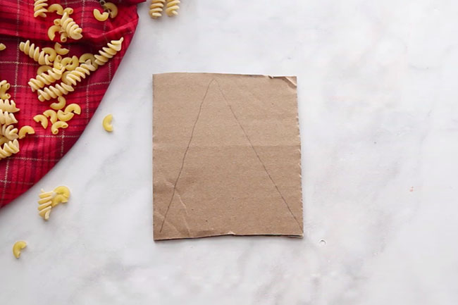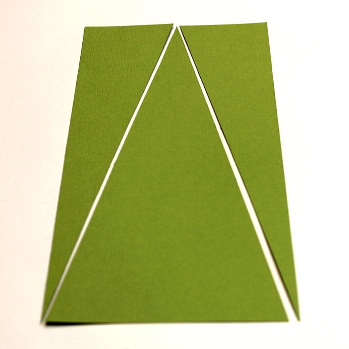 - Z tvrdého zeleného papiera si vystrihneme trojuholník.