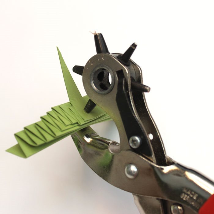 - Pomocou dierkovača vystrihne v strede harmoniky guľatý otvor.