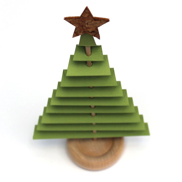 - Na záver prilepíme na spodnú časť pník, na vrch stromčeka hviezdu. A ak si chcete stromček zavesiť ako ozdobu, vytvorte si z hrubšej nitky očko, za ktoré stromček zavesíte 🙂