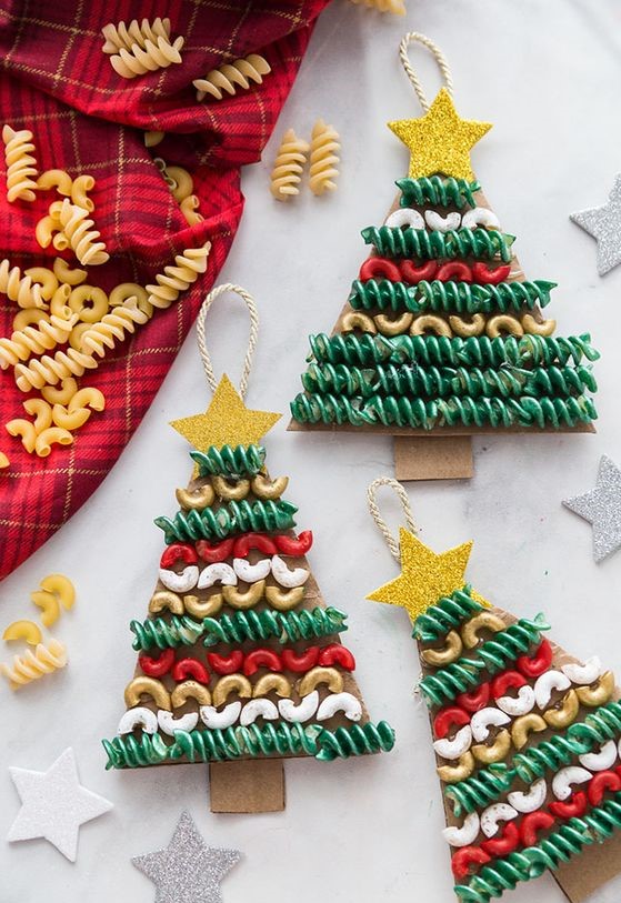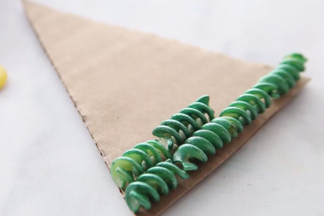 - Keď už máme namaľované cestoviny uschnuté, priložíme si ich na stromček tak, aby zbytočne nevyčnievali.