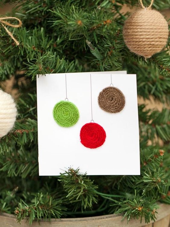 - Ďalší, veľmi originálny spôsob ako vytvoriť pohľadnicu je nalepovanie farebných bavlniek. Na lepidlo nanesené do tvaru koliesok priložíme farebné bavlky a poriadne ich pritlačíme aby sa neodlepovali. Ešte dokreslíme alebo dolepíme šnúrku na zavesenie 🙂