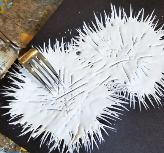 - Vidličkou rozotrieme farbu ako vidíme na prvom obrázku a necháme zaschnúť.