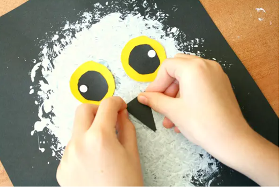 - Prichystáme si tvrdý čierny papier, na ktorom nám snežná sova najlepšie vynikne.