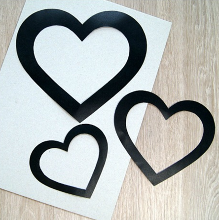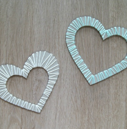 - Postup je veľmi podobný ako ten predošlý. Z kartónu si vystrihneme srdiečko, no tento krát nebude plné, ale s vystrihnutým srdiečkom v strede.