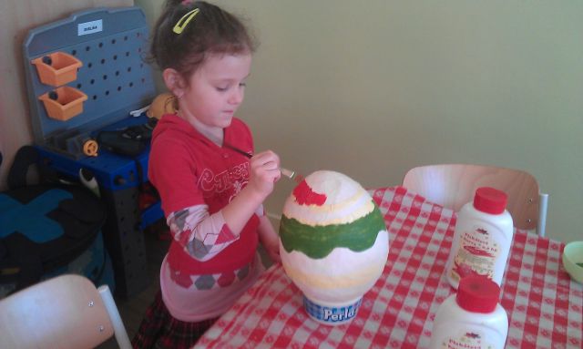 Posedenie pre hračky vyrobené z papierových pohárov.