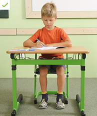 - sedieť na celom sedadle, nie na jeho okraji, podľa možností s nohami na podlahe. Dbajte na to, aby 2/3 dolných končatín (stehná) boli na sedadle a 1/3 bola voľná. Chodidlá nôh by sa mali celou šírkou opierať o podlahu
